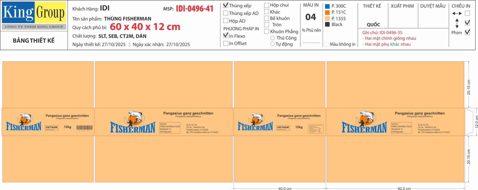 Thùng xếp trắng, 5 lớp , chống thấm 2 mặt, in flexo , thùng FILET, 800gx15, net 75%, 130-180g; 100-150g MS: 0483-37 KT: 60 X 40 X 13.5 CM CHẤT LƯỢNG CAO ĐẶC BIỆT |