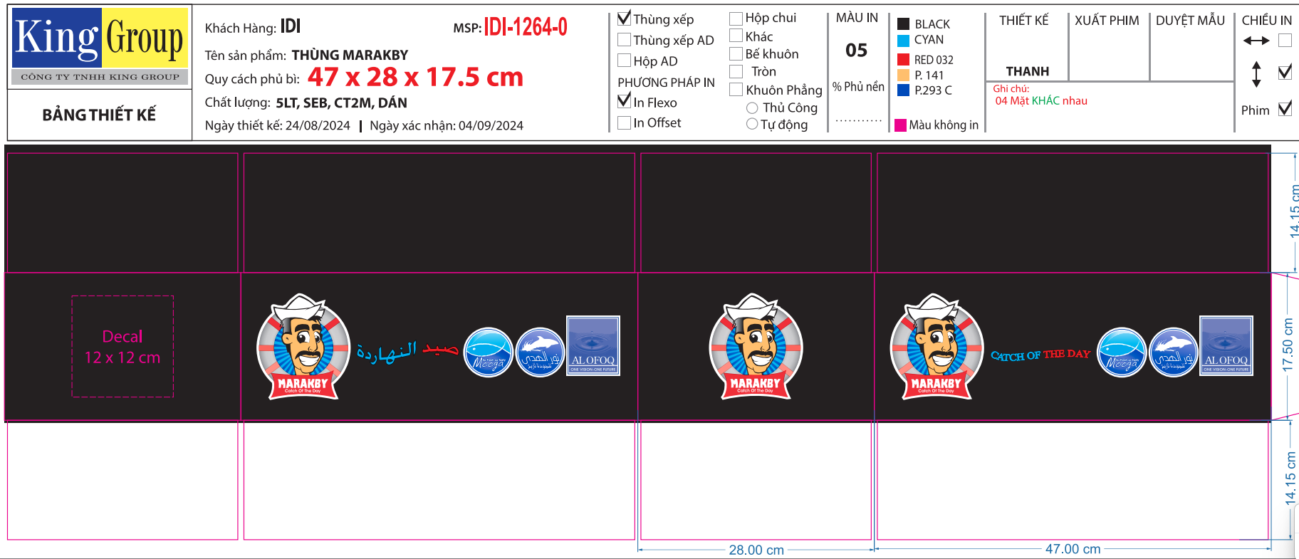 Thùng xếp, giấy trắng 5 lớp, chống thấm, cán màng, nền đen, in flexo. KT: 47 x 28 x 18.5 cm MS: 1264-2 |