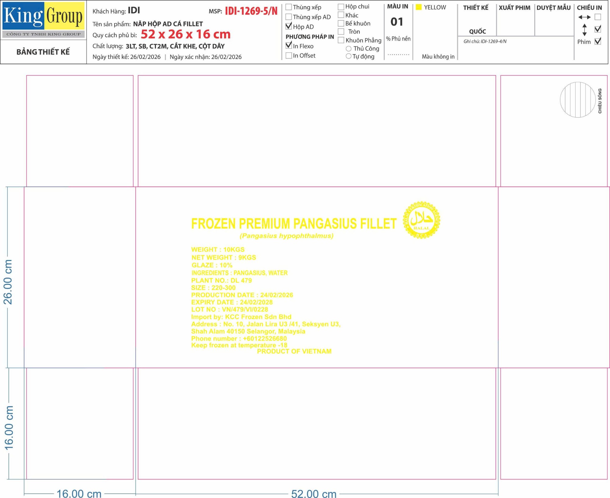 Thùng âm dương,giấy trắng, nắp 3 lớp chống thấm, đáy 5 lớp chống thấm, in Flexo, Thùng chữ màu vàng, Ms :1269-5 – 52 x 26 x 16 cm