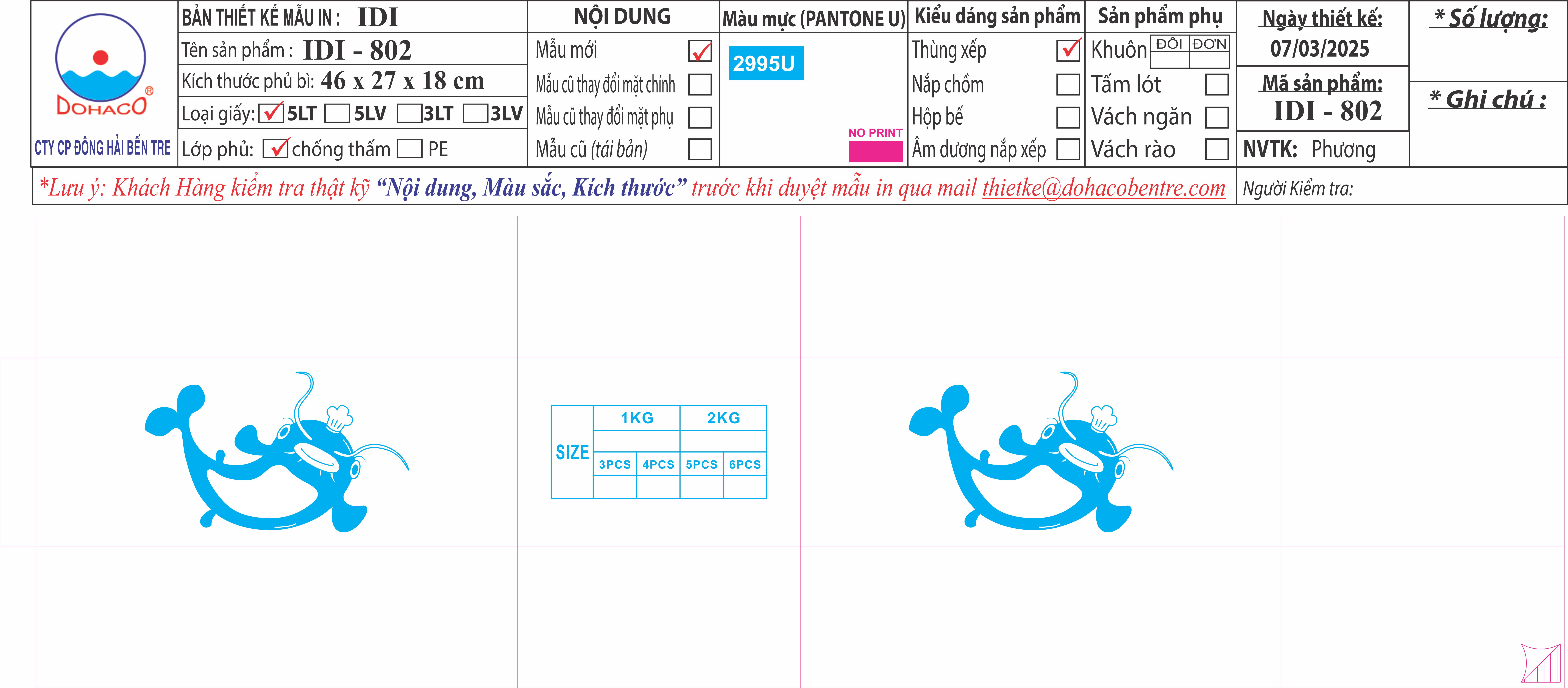 Thùng xếp trắng, 5 lớp, chống thấm 2 mặt, in flexo , thùng logo con cá xanh dương nhạt, IQF, 1kg x 10, net 55%,3-4 miếng, Ms: 802 46 x 27 x 18 cm