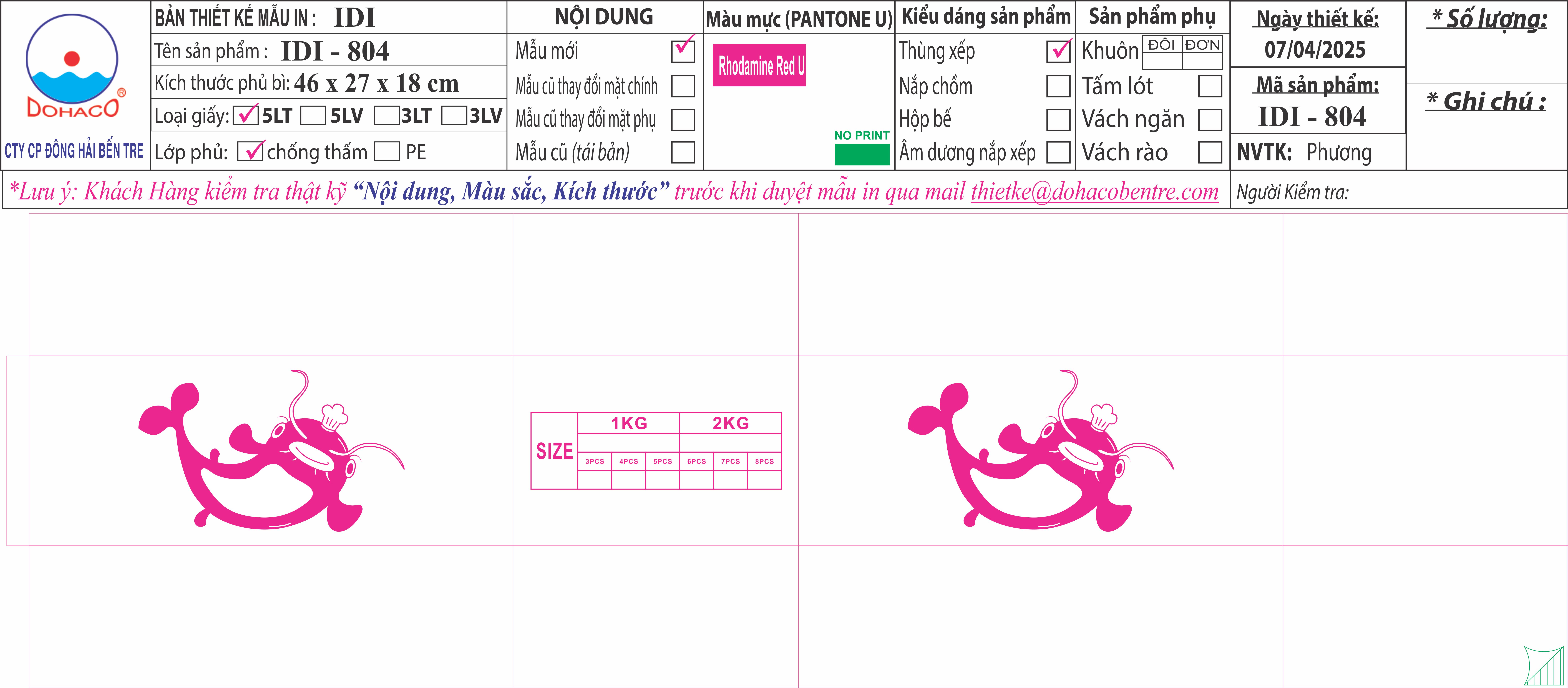 Thùng xếp trắng, 5 lớp, chống thấm 2 mặt, in flexo , thùng logo con cá hồng, IQF, 2kg x 5, net 55%, 4-5 miếng Ms: 804 46 x 27 x 18 cm