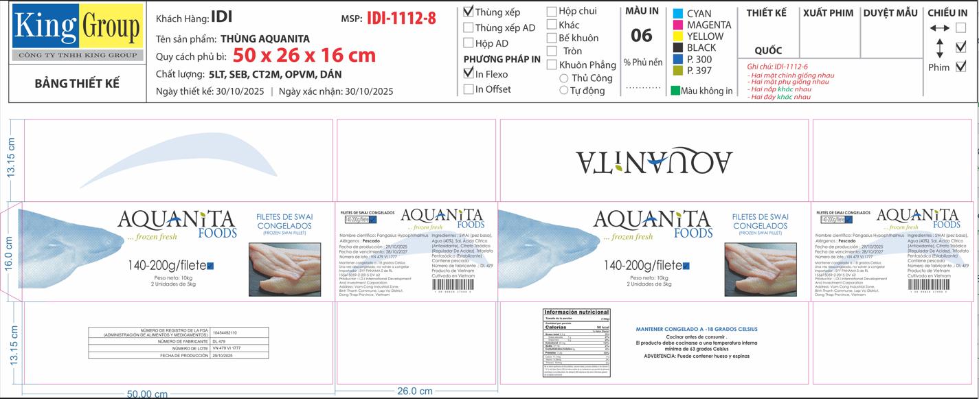 Thùng xếp, giấy trắng 5 lớp, chống thấm 2 mặt, cán OPV, in Flexo, Thùng logo AQUANITA FOOD, NỀN TRẮNG, 5kgx2, net 60%, (5-7oz, 140-200g) MS: 1112-8 KT: 50 x 26 x 16 cm